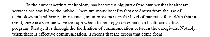 Answer preview to analyze how technology can be used to enhance a health care safety program