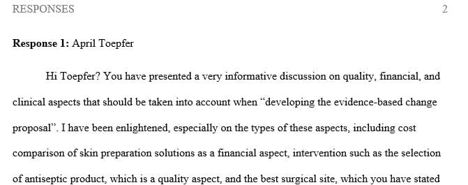 Answer preview to a financial aspect that will need to be taken into account when developing the evidence-based change proposal