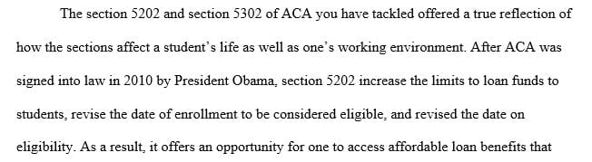 What I can say that since the passing of this bill with it’s provisions I have just noticed a couple changes within Banner. When it comes to the first provision Section 5202. Banner Health has changed their school loan policies. Now to enroll it is a first come first serve waiting basis and it is dependent upon how many classes you are taking. Before at Banner you could just apply and receive aide I believe their may have been stipulations before but now everyone gets access but not everyone who applies will receive it.