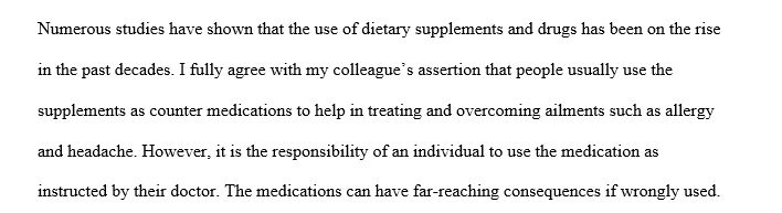 Dietary supplements can be classified as herbal and non- herbal with herbal being used more in society than noon herbal. “Unlike OTC preparations, dietary supplements have not been evaluated by the FDA for safety and efficacy” (Levinthal, 2016, p. 278) Even though the scientific research is not finished on dietary supplements nine herbs, which have been researched Ephedra. Ginkgo, Ginseng, Hawthorn, Kava, St. John’s wort Saw palmetto, Turmeric and Valerian and all have been proven to put individuals at risk for having one or more of the following symptoms dis-orientation extreme euphoria, and hazardous irregular heart changes nausea, high blood pressure upset stomach, and liver damage.