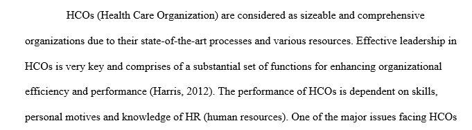 Choose a critical issue facing Healthcare Organizations (HCOs) such as markets