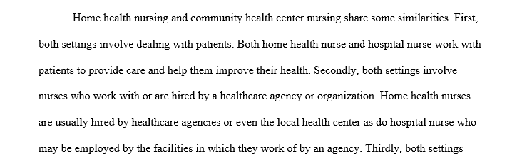 Compare and contrast the role of the community health nurse  in the practice settings.