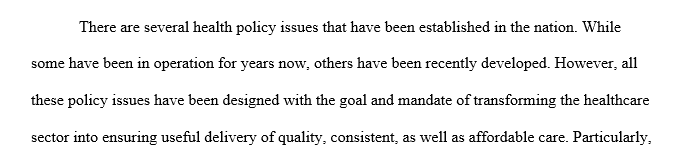 In 300-400 words Describe what you think is the most pertinent health policy issue with the potential to transform the way health care is delivered.