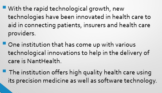 Explore the technology systems offered by Nanthealth, a provider of “telehealth” and health management services via the following link: