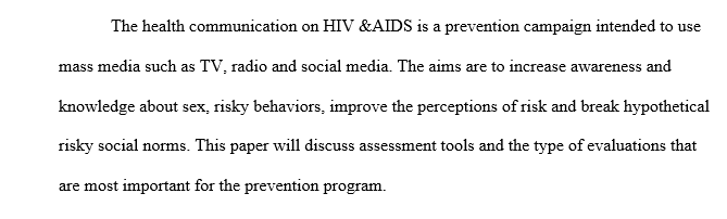 My choice of health communication campaign would be the prevention campaign against HIV/AIDS, through the mass media. The campaign will help people have an increase in knowledge about sex, change of sexual behaviors, improve in risk perception, as well as criticism of hypothetically risky social norms. The campaign aims to utilize television, radio, as well as other ideally means a fragment of the multi-level exertions.