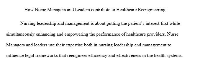 Answer preview to how nurse managers and nurse leaders contribute to the reengineering of health care