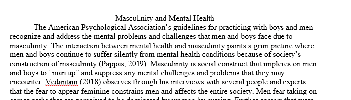 Cite all sources of information! When in doubt, cite the source. Paraphrasing also requires a citation. Discussion: Interactions between mental health and masculinity.