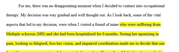 so the whole statement should be about me and occupational therapy major.