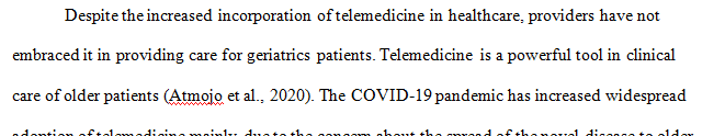 (I choose telemedicine with geriatrics patients)Discuss why you feel this process or issue should be changed.