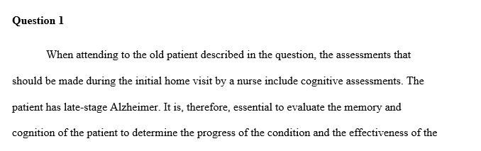 Answer preview to on the initial home visit by the nurse what assessments should be made