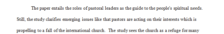 1. “It is the responsibility of pastoral leaders to focus predominantly on the spiritual needs of the people.” Discuss.
