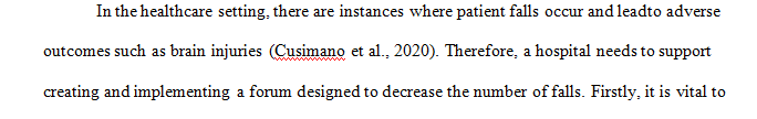Discuss how the hospital could support the creation and implementation of a forum designed around clinical best practices across all levels of the organization that would reduce the number of patient falls. Within the context of the COVID-19 pandemic, address any barriers that may exist in the implementation of a clinical best practices forum. Justify your response with appropriate research and reasoning.
