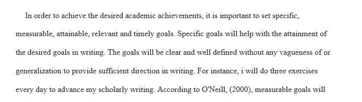 Post your three S.M.A.R.T. goals, and explain how these goals will help you move forward in your scholarly writing. Explain the barriers you might encounter that may hinder accomplishing your goals. Also, explain how you might address these barriers to completing your goals.