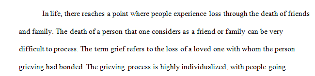 The death of a loved one is a significant event that everyone experiences. An individual’s social environment, including societal and familial cultural factors, may influence how an individual approaches death or grieves the loss of someone else who dies. You can anticipate addressing grief in your social work practice and, therefore, should develop an understanding of the grieving process.