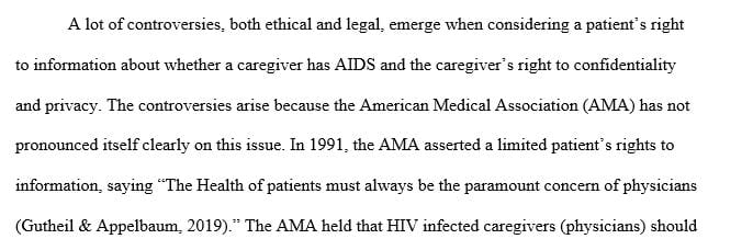 Answer preview to the potential controversy when considering a patient’s right to know whether a caregiver has AIDS